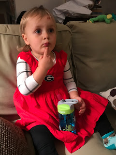 We went to Atlanta to meet with some people to share about Africa and while we were at dinner, Amelia hung out with Gigi and Papa and watched the Georgia Game. In this picture, she is thinking “If Georgia wins, I wonder if they will move to the #1 spot.” Good question, Amelia. Good question. (They did.)