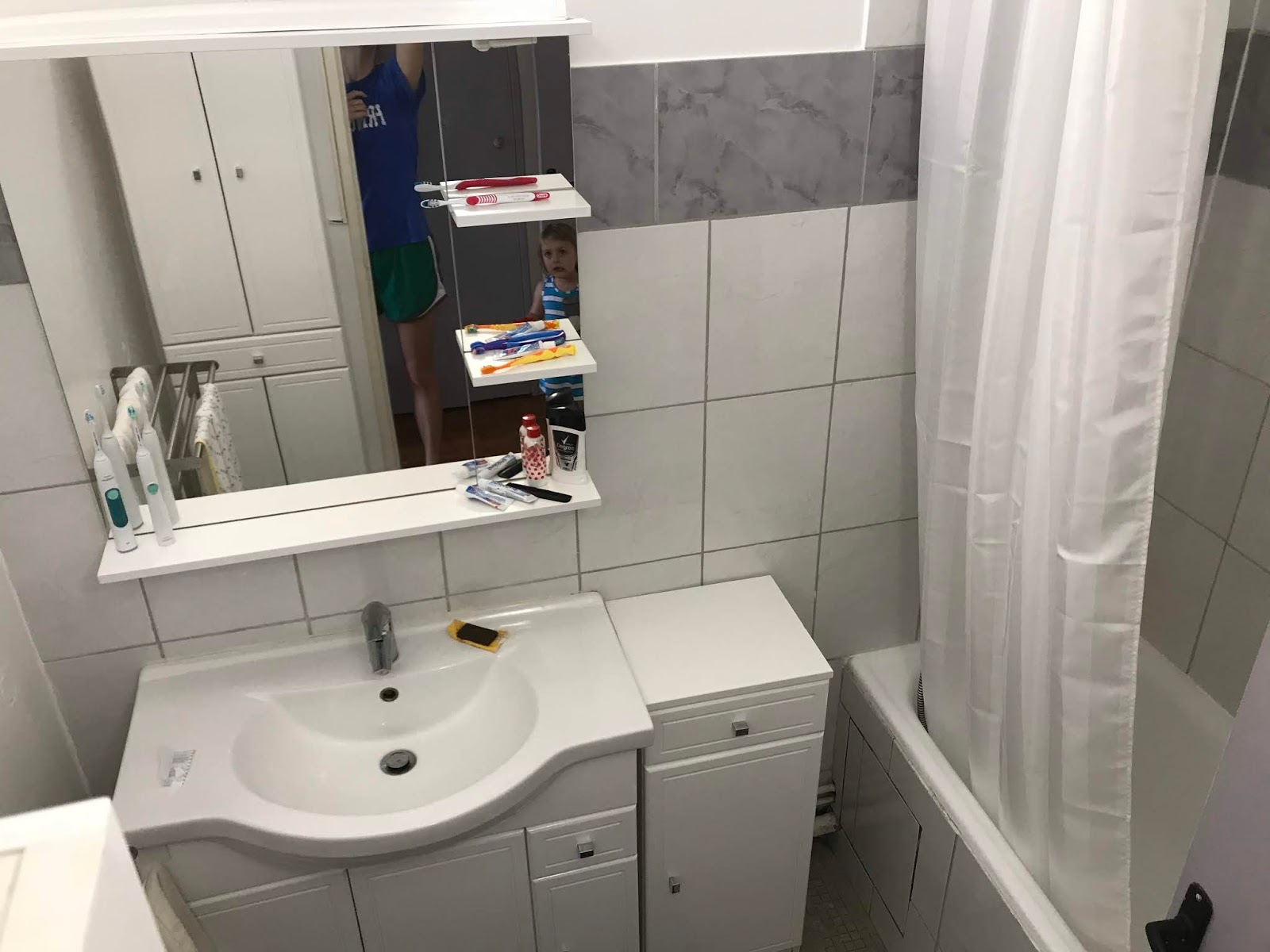 We arrived at 6:00 am. Michael had arranged a van for us to be transported from the airport to our school/apartment. So glad he did! 10 bags and 4 people would have been a sight on public transportation! We arrived and showered and took a nice nap – all four of us! – and then walked about a quarter of a mile to our school to introduce ourselves. We met a few other families who are also attending Le Cedres. We got some tips from a few people who have been here a while and walked another 0.5 miles to the grocery store, Cora. It’s like French Walmart…maybe even bigger. A guy who we just met at the school literally came to find us in the store to bring us a grocery cart (like the ones you can walk home with from the market) and told us he has a car and was free to wait for us/help us in the store until we finished so he could drive us back with all of our “set up” groceries!!! What a kind/generous/thoughtful thing! So fun to see how God looks out for us and takes care of us even in the little details of life! Also, the girls were getting fussy so I ended up just walking back with them and Michael and our new friend stayed and did all the grocery shopping!