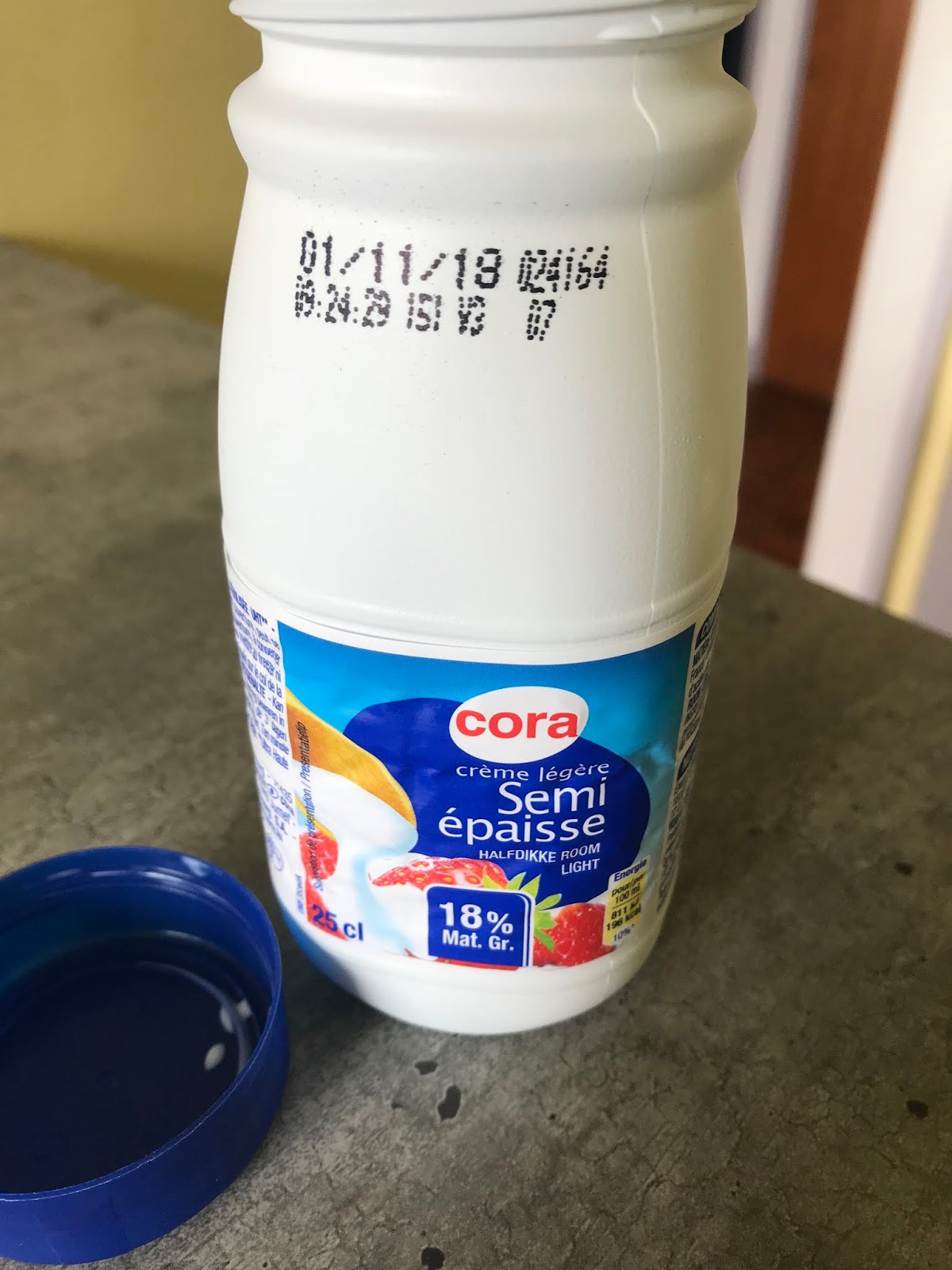 Thankfully, Michael speaks un petit Francais, however there were a few little hiccups on our grocery trip. Example one – we wanted creamer for our coffee and ended up buying some sort of thick cream that you would put, say, I don’t know, on your fruit or something like the picture shows on the front cover (hand on forehead). Good news though! It still tastes great in coffee!!!