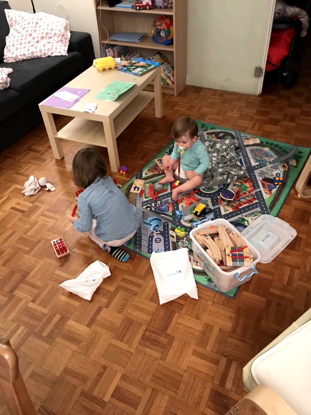 The girls enjoying some of their Christmas presents! (Thanks Gigi and Papa for the peg boards and thanks Meena and Pa for the floor mat!)