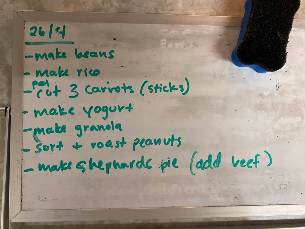 7:00-9:00 – Breakfast (which includes smoothies on the days I’m home), kids play, and I get things ready for the day. This includes writing a list for Acheri, starting laundry, filling pitchers with filtered water, and filtering water.